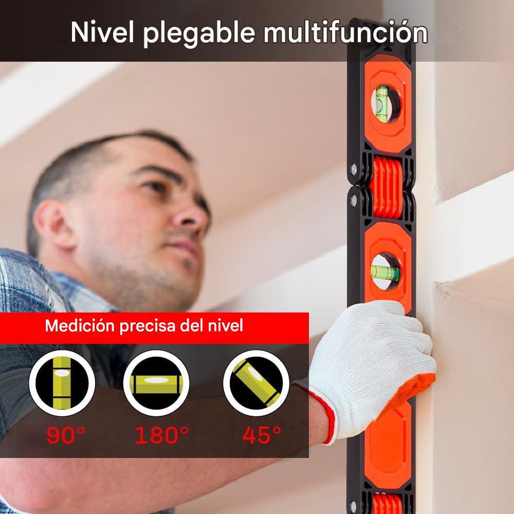 Ya sea que instales estantes, trabajes con madera, fontanería, azulejos o proyectos de construcción, el nivel plegable se adapta a tus necesidades. Su diseño articulado te permite evitar obstáculos y medir múltiples ángulos de forma simultánea, ofreciendo una flexibilidad sin igual.
